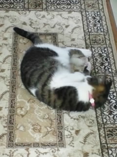 新しい玄関マットに転がり中