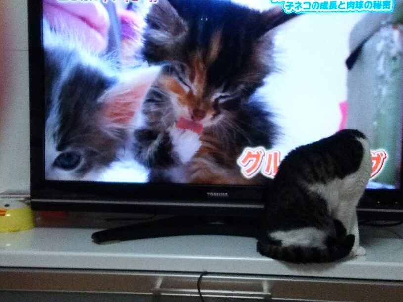 テレビの中の仔猫と一緒に (^w^)