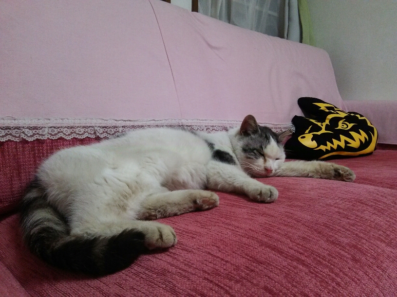 兄ちゃんがおうちでリラックスして寝てると安心するわ~♪ (*´ω`*)